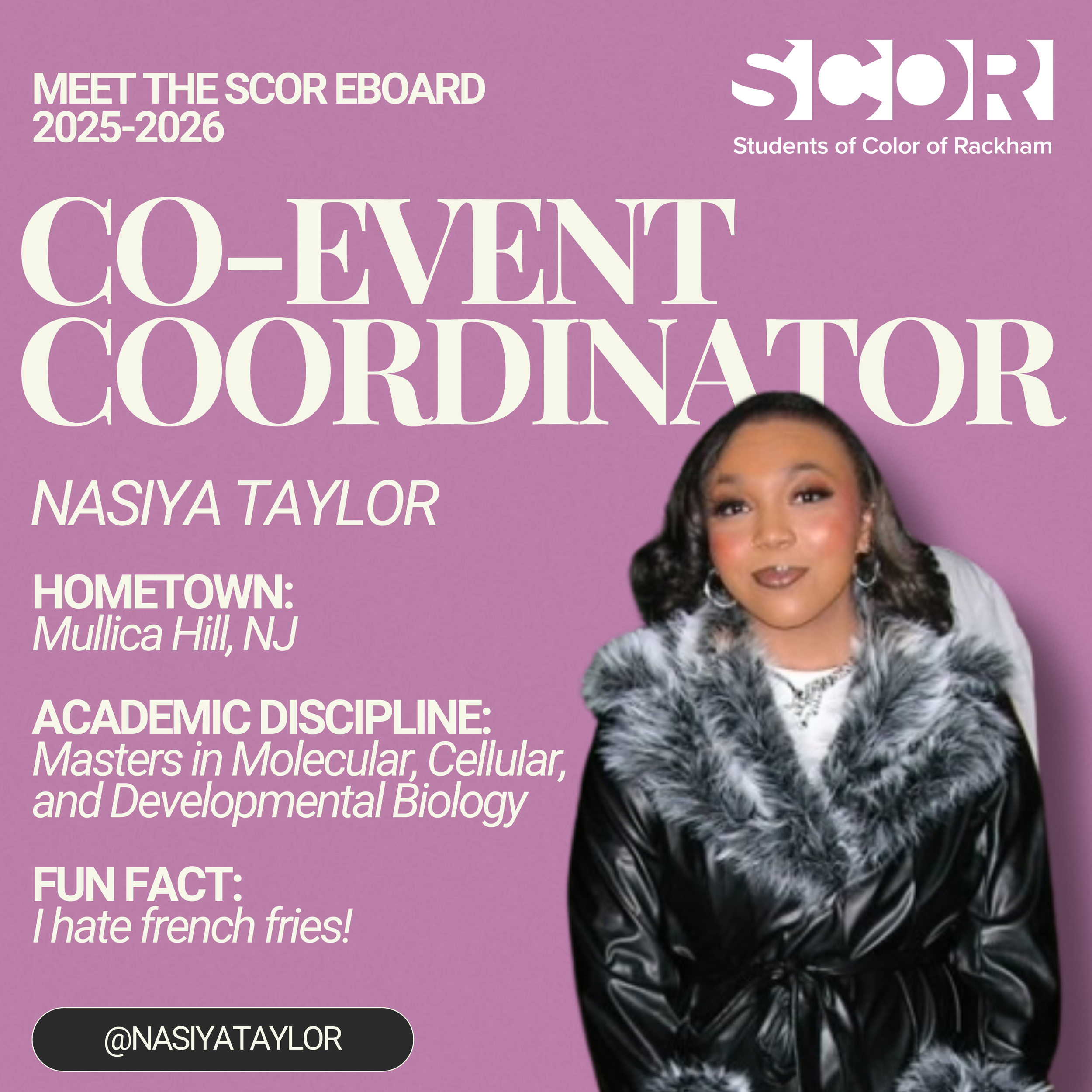 Social Chairperson/Event Coordinator Nia Johnson(Ecology and Evolutionary Biology)