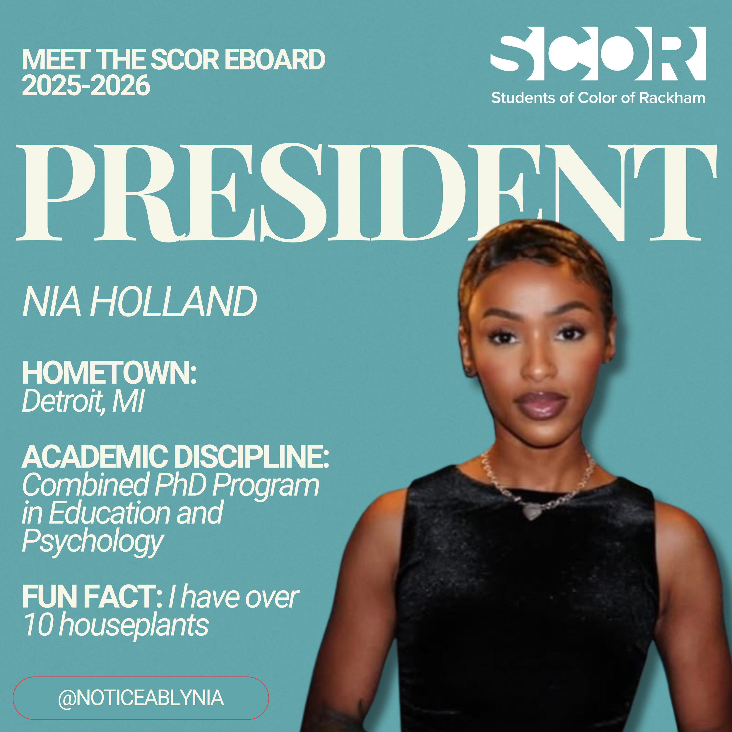 Vice President Nia Johnson(Ecology and Evolutionary Biology)